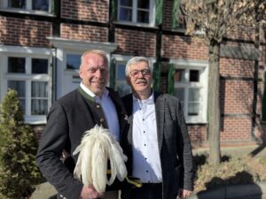 „Heute gebe ich den Hut weiter, nicht mit Wehmut, sondern mit Vertrauen“, so die Worte vom Ex-Oberst und neuen Ehrenoberst Jürgen Krupski bei der Hutübergabe am Sonntagmorgen im Heimathaus. Jürgen