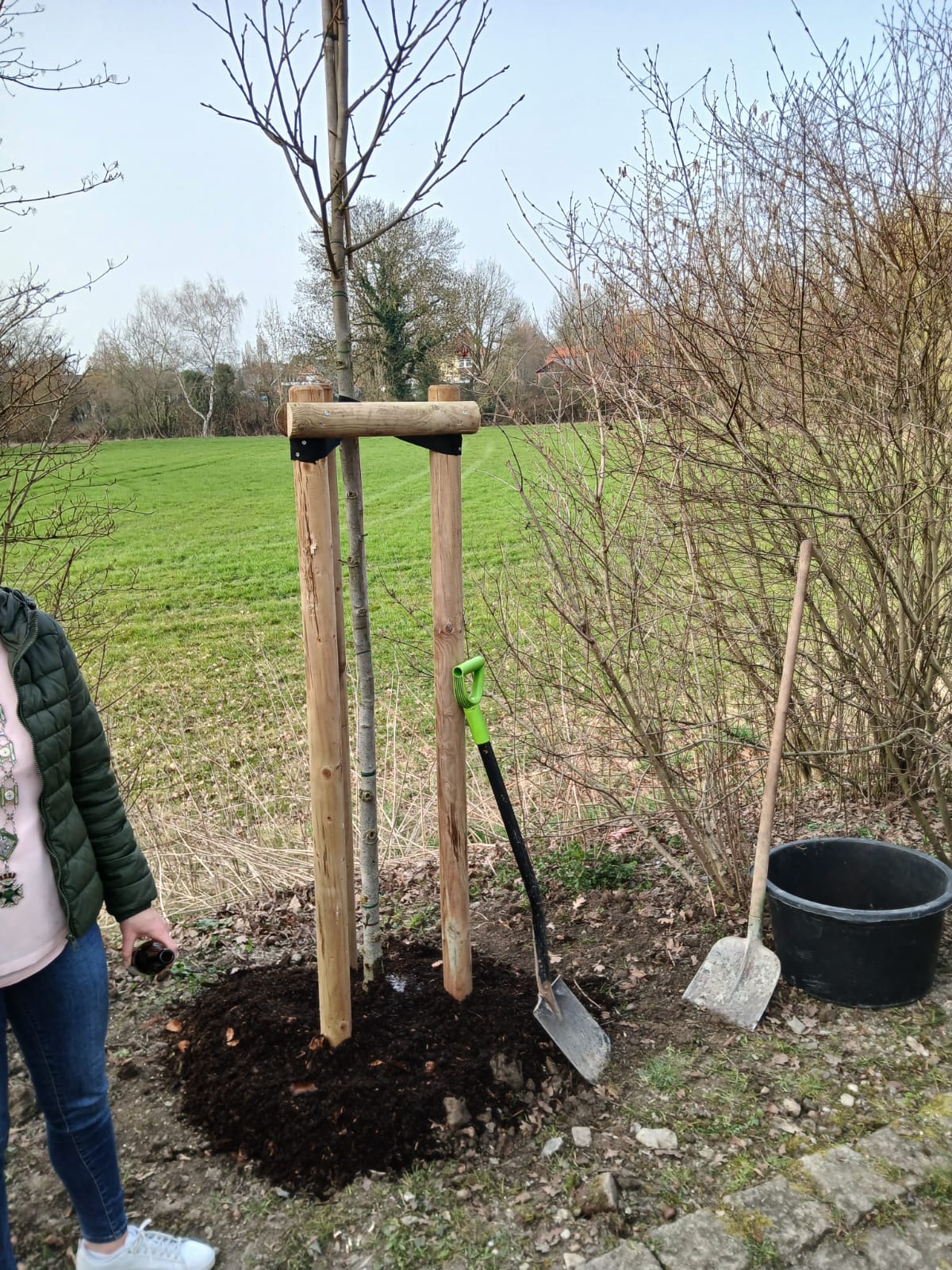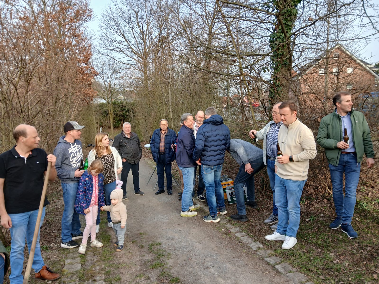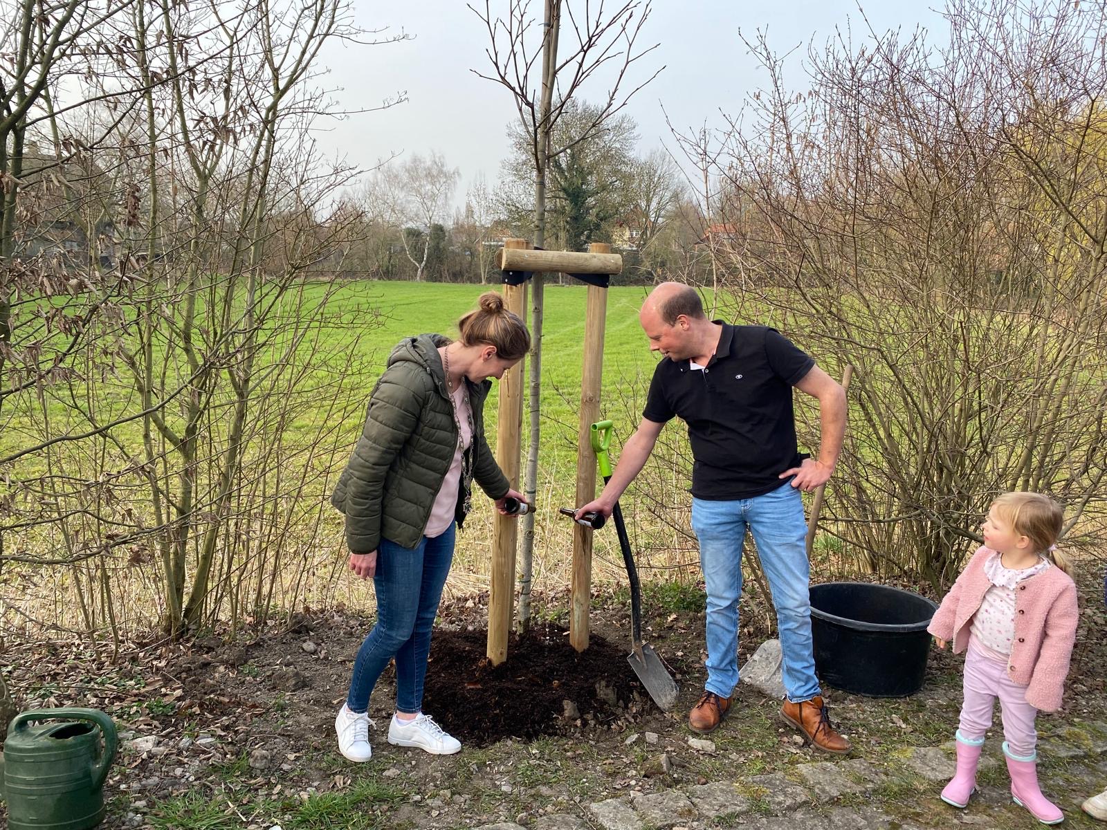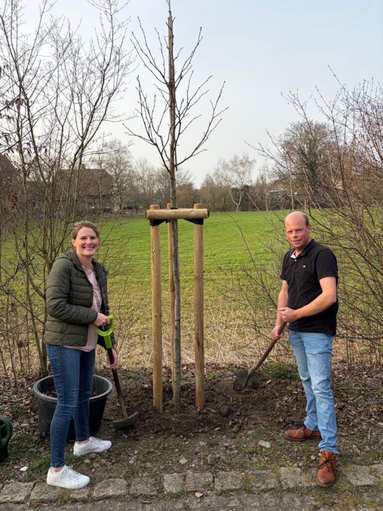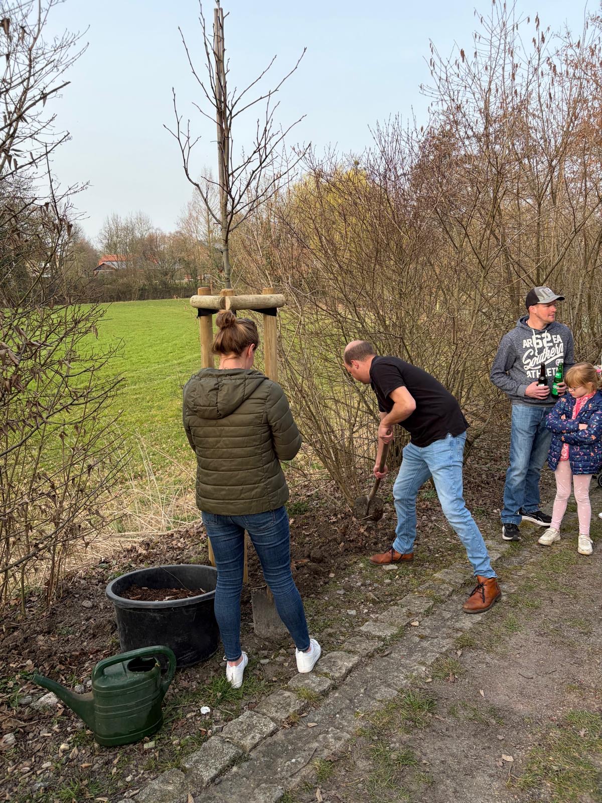 Eine schöne Tradition der Schützenvereins wurde erneut am Dorfteich in Dolberg gepflegt: Der amtierende Schützenkönig pflanzte gemeinsam mit seiner Königin und Mitgliedern der Königskompanie einen neuen Baum. Über 20 Könige waren zu diesem Anlass erschienen und begleiteten die Aktion. Schützenkönig Christian Droste und Königin Lisa Bernsmann setzten in diesem Jahr einen Amberbaum in die Erde. Für Christian war die Pflanzarbeit gewissermaßen Routine, schließlich ist er ja Gärtnermeister. Fachkundig wurde der junge Baum an seinem Standort eingesetzt. Besonders im Herbst wird er für ein schönes Farbspiel sorgen. Zur Tradition gehört auch ein besonderer Moment: Das erste Gießen erfolgt nicht mit Wasser, sondern mit Bier. So wurde der frisch gepflanzte Baum unter dem Beifall der Anwesenden standesgemäß „angegossen“. Dazu sprach der König den traditionellen Wunsch aus: „Er möge wachsen, blühen und gedeihen.“ Bleibt abzuwarten, wie das neue Bier zum Wachstum beiträgt… Nach der erfolgreichen Pflanzaktion klang der Abend in geselliger Runde aus. Die Familie Bernsmann hatte die Anwesenden zum „Klönen“ eingeladen. So wurde nicht nur ein neuer Baum am Dorfteich gepflanzt, sondern auch die Gemeinschaft der Schützen weiter gepflegt.